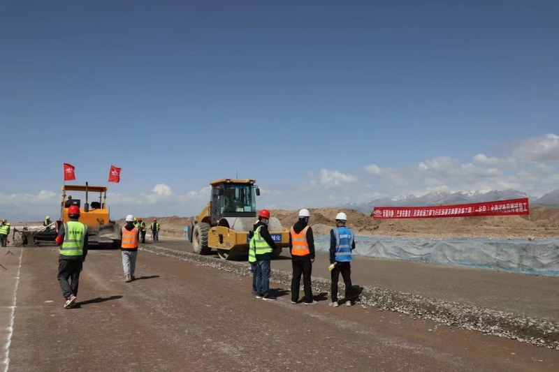 5月28日,伴隨著第一車水泥穩(wěn)定砂礫混合料緩緩倒入攤鋪機(jī)料斗,標(biāo)志著由我司承建的新疆和靜(巴音布魯克)機(jī)場(chǎng)飛行區(qū)跑道水穩(wěn)基層試驗(yàn)段施工正式拉開序幕。