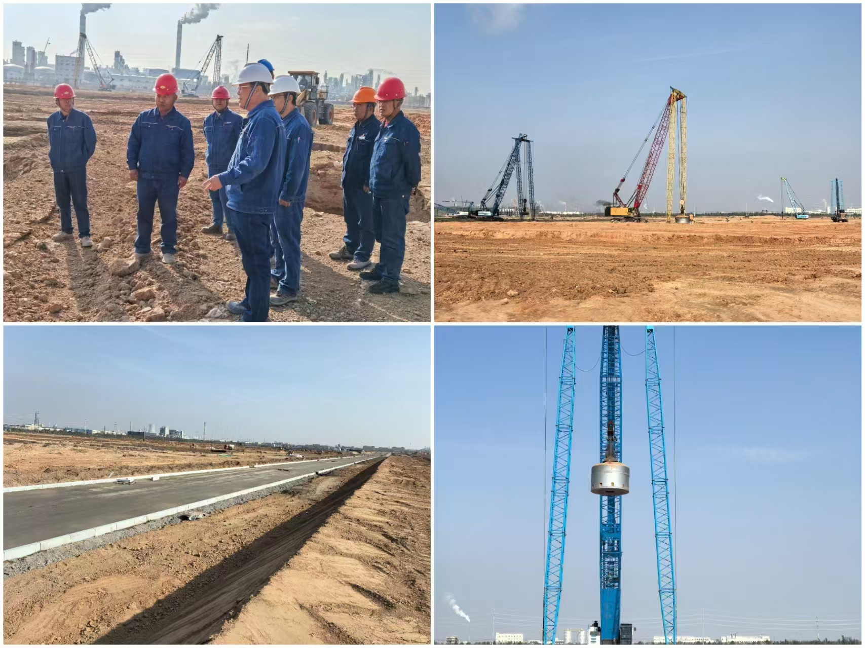 10月19日,國家能源集團寧夏煤業公司煤制油化工工程建設指揮部領導對我司承攬的費托尾氣制 LNG 項目地基強夯工程的安全管理、質量控制、進度控制、灑水降塵等工作進行現場檢查指導。